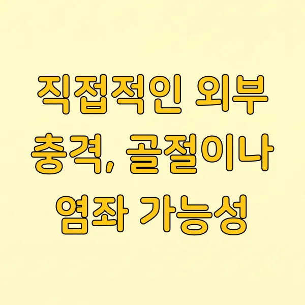 직접적인 외부 충격, 골절이나 염좌 가능성